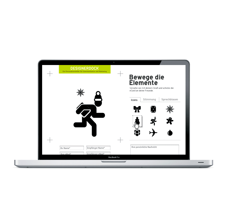 Sie sollte digital und analog funktionieren; eine Weihnachtskarte für die Personalvermittlungs-agentur. Also gab es echte Sticker und eine e-card zum selber entwerfen.
